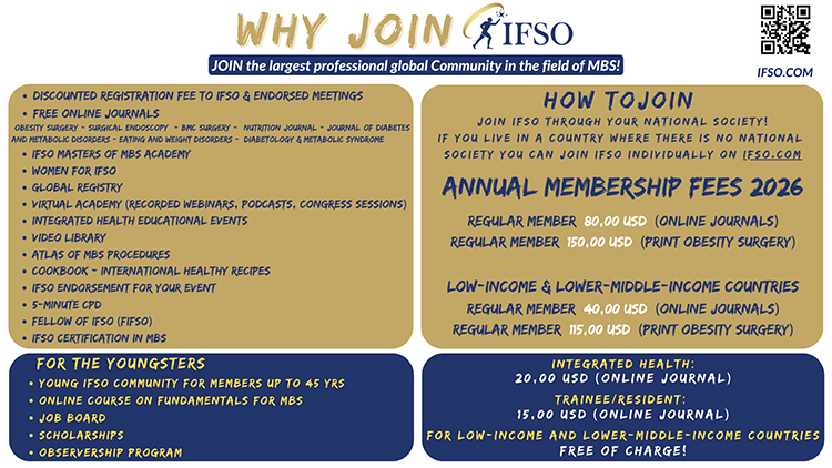 - Membership in the biggest professional global Community in the field of Obesity and Metabolic Surgery